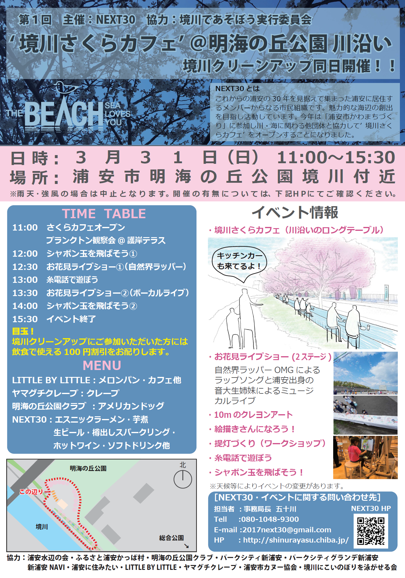 会場に隣接する境川を「浦安市カヌー協会」の方々が、カヌーにて走行予定です。海辺の活用している数少ない団体です。毎年境川では、「千葉県カヌースラローム大会」が開催されているのをご存じですか?