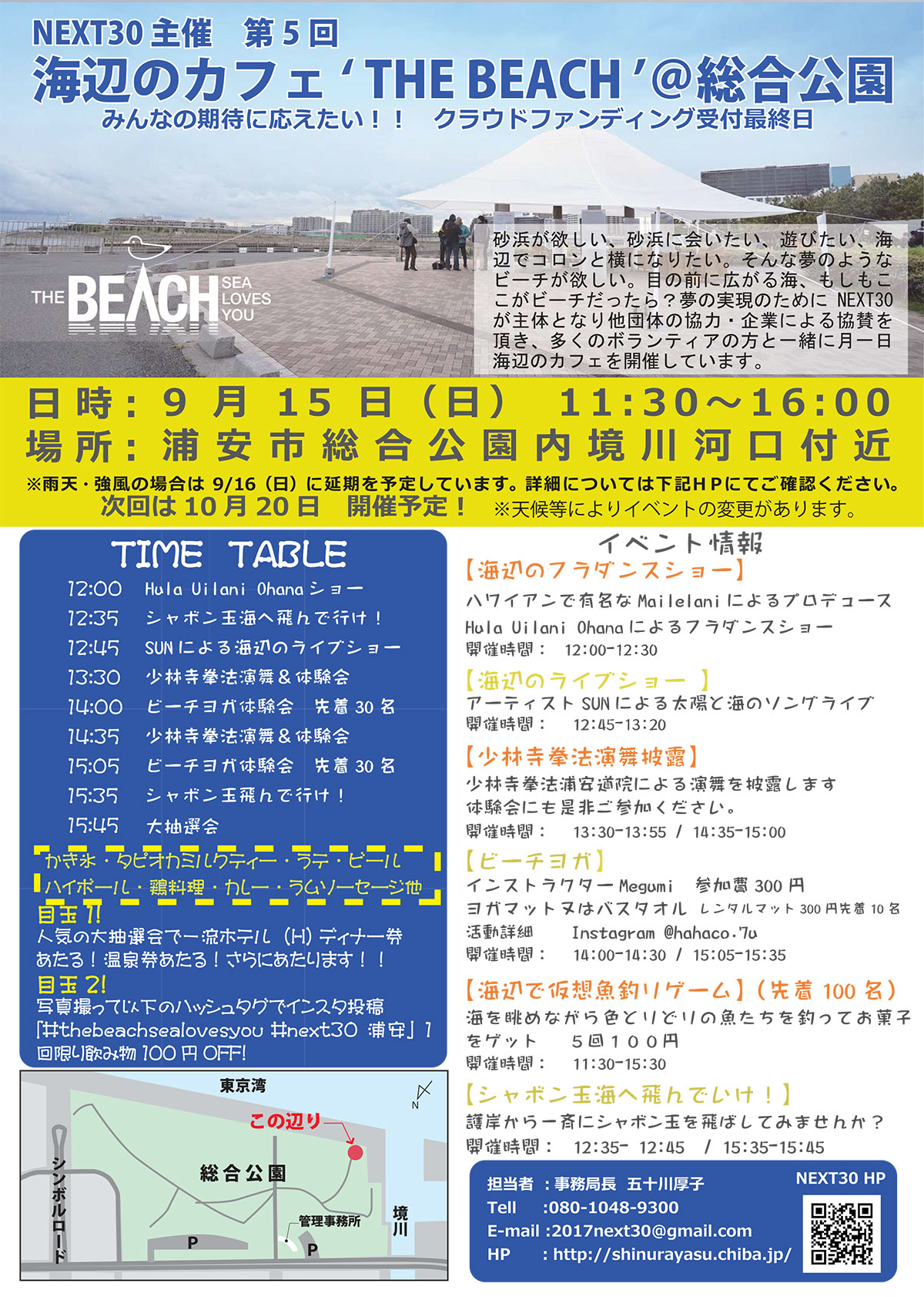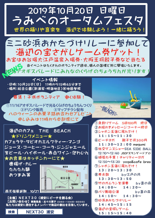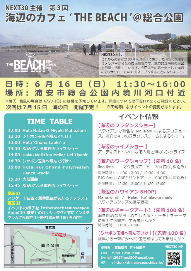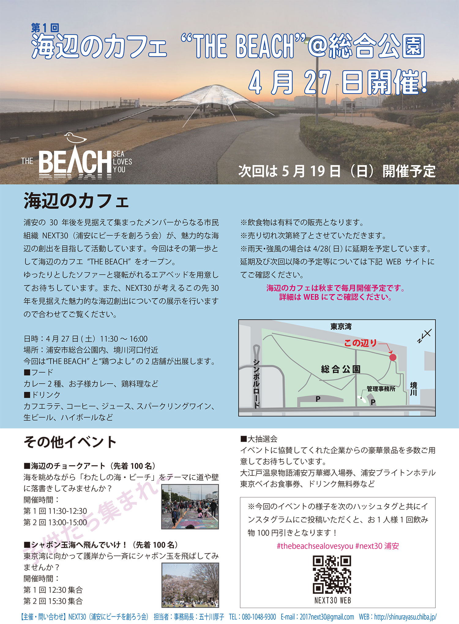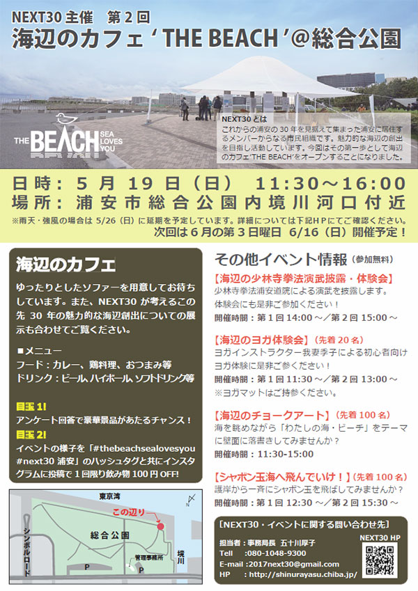 イベントの様子を「#thebeachsealovesyou #next30 浦安」のハッシュタグと共にインスタグラムに投稿で 1回限り飲み物100円OFF!