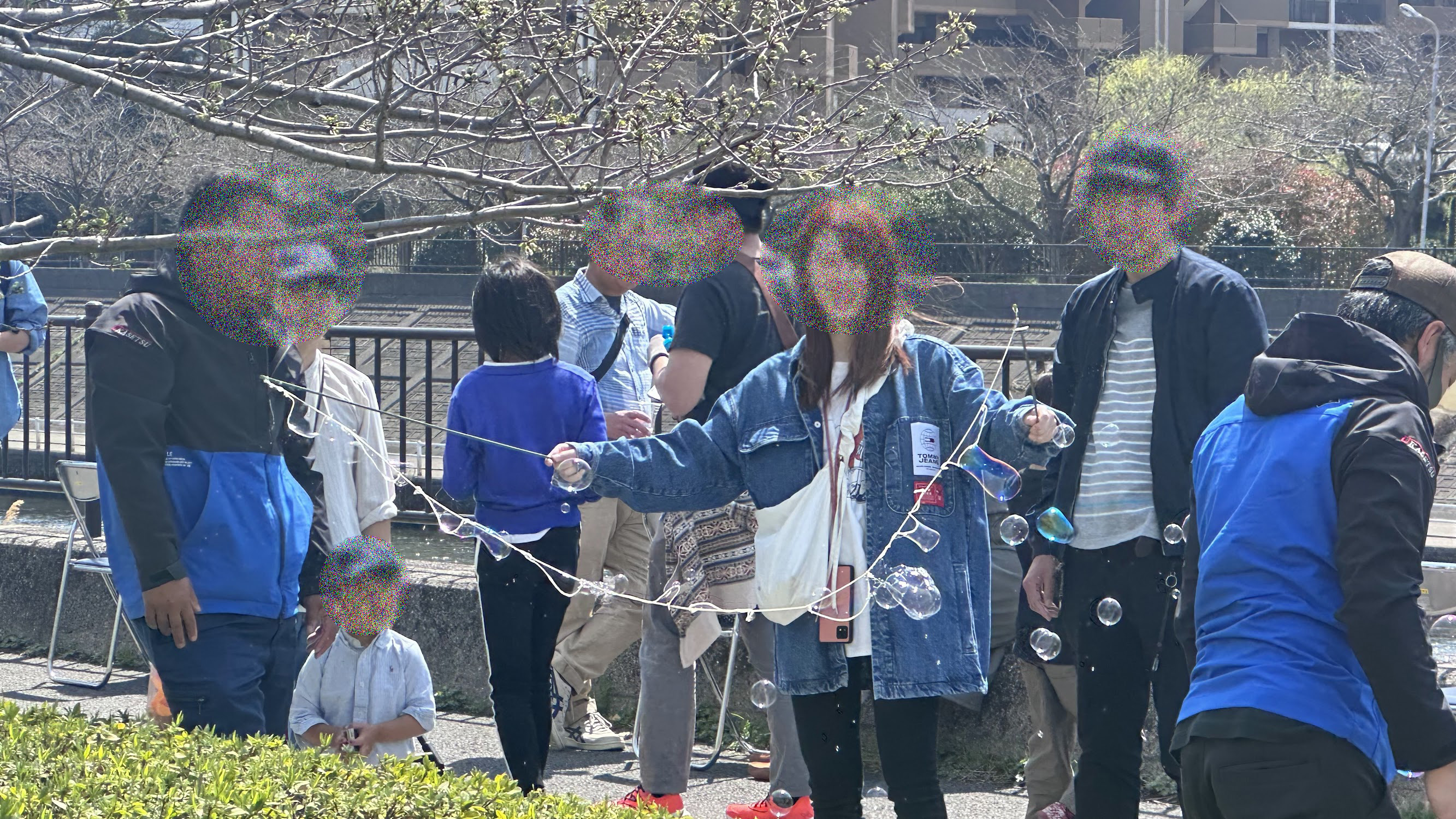 護岸から一斉にシャボン玉を飛ばしてみませんか?