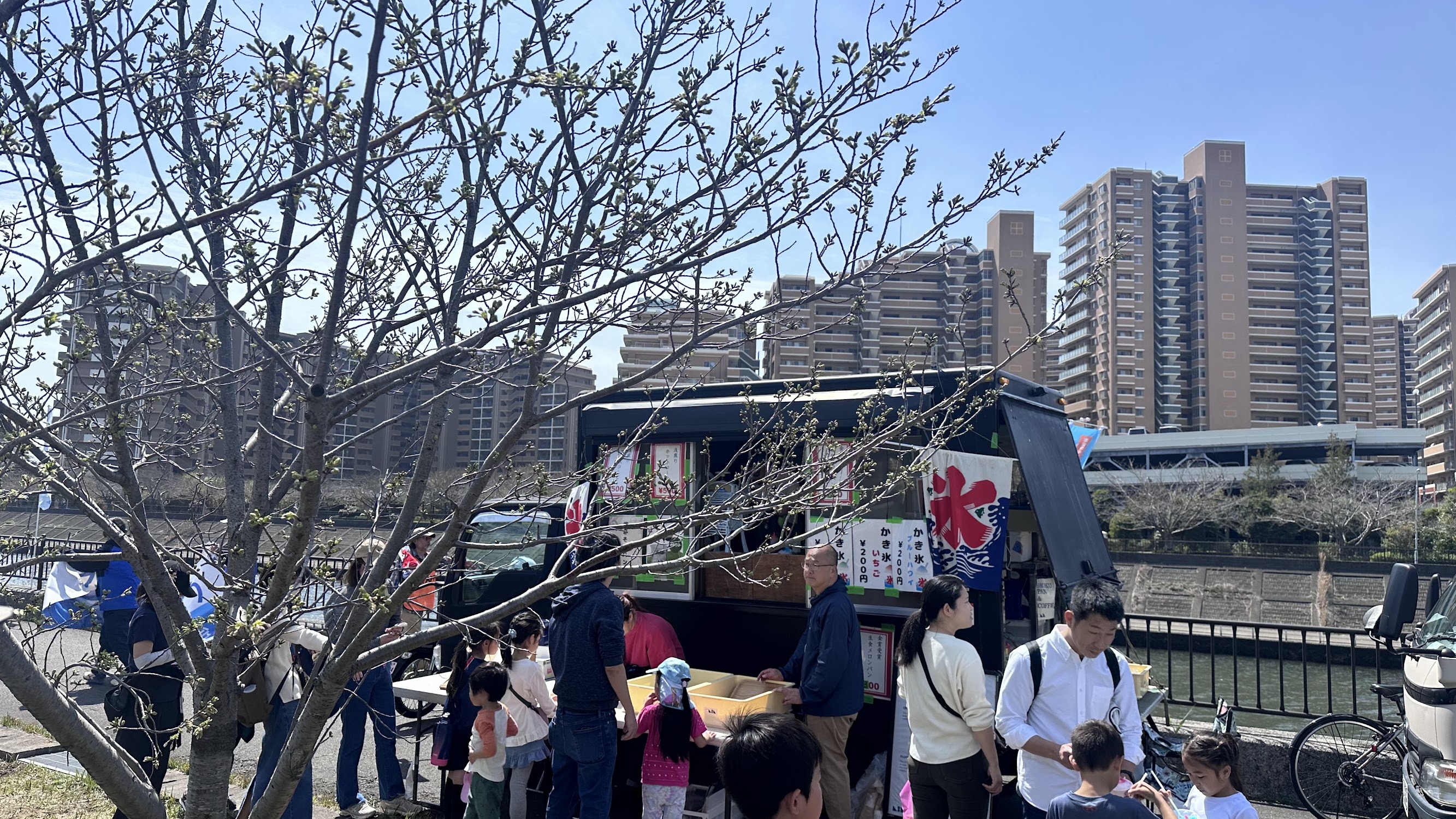境川クリーンアップの参加者の方々へ軽食や飲料を提供しました。