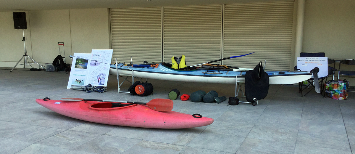 お絵描きイベントの会場側では、カヌーて日本一周に成功した三浦さんのカヌーを展示しました。