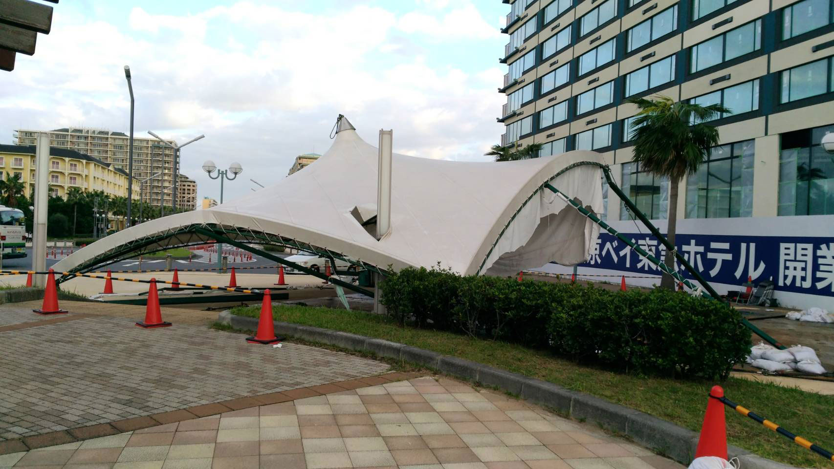 台風被害、浦安フェスティバルでねぶたの組み立てに使ったテントが倒れて壊れる