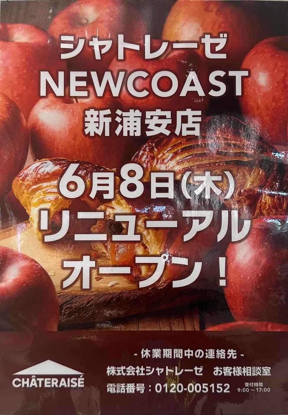 シャトレーゼ ニューコースト新浦安店が、6月8日リニューアルオープン予定で現在休業中となっています。
