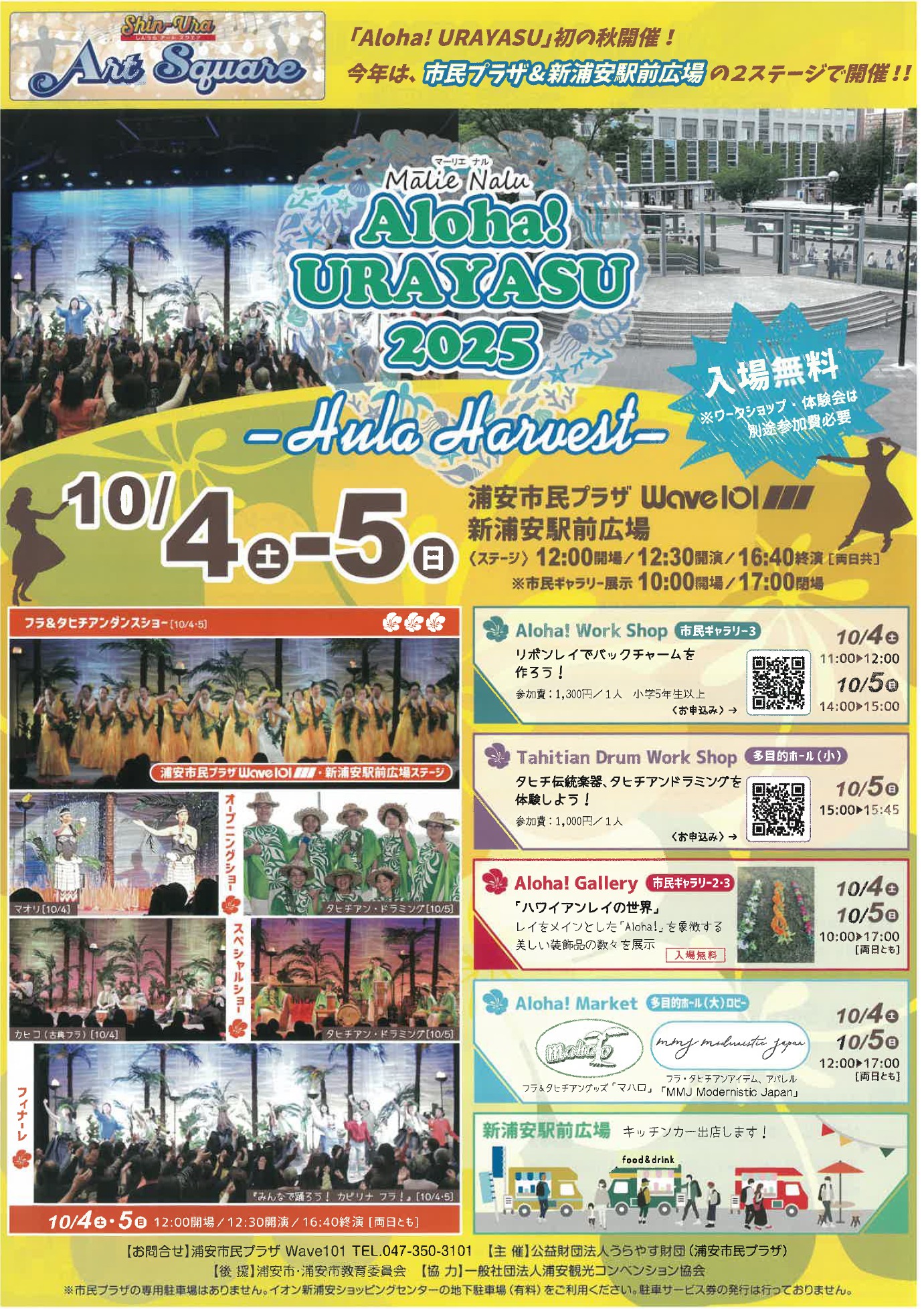 いよいよ、うらやす財団主催が新浦安駅前広場を「文化芸術の発信地」とすることを目標に展開する文化芸術振興事業「Shin-Ura Art Square」の一環として、「Mälie Nalu Aloha! URAYASU 2025」第4回目となりますフラダンスとタヒチアンダンスステージが開催されます。