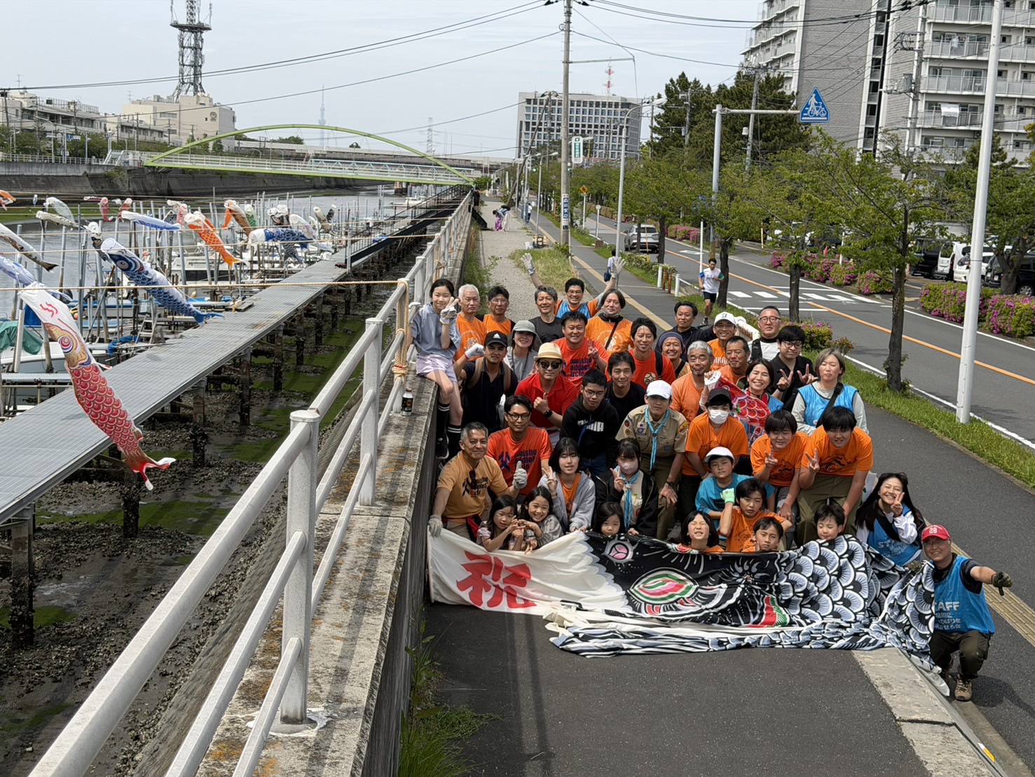 境川にこいのぼりを泳がせよう