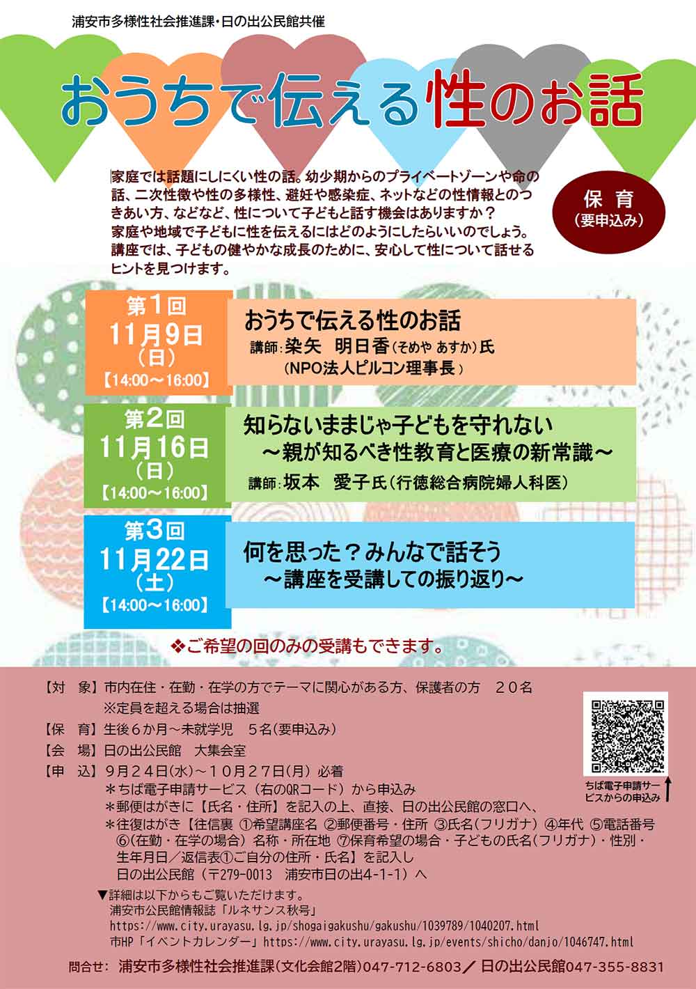 14:00〜16:00 浦安市多様性社会推進課・日の出公民館共催事業 ルピナスセミナー「おうちで伝える性のお話」